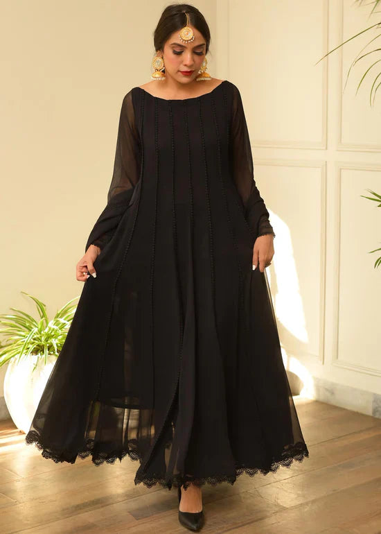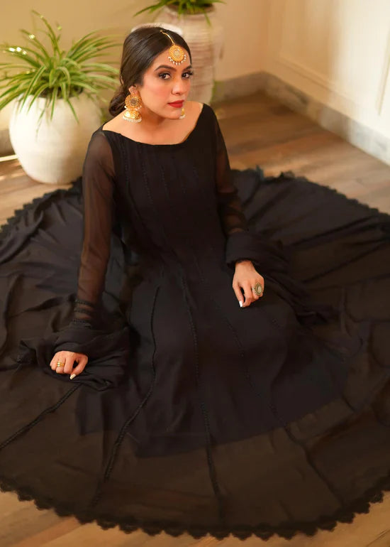 Additional Description: A Classic Chiffon Kalidar with delicate Lace detailing on shirt and duppatta. Disclaimer: The lace design may vary and is subject to availability