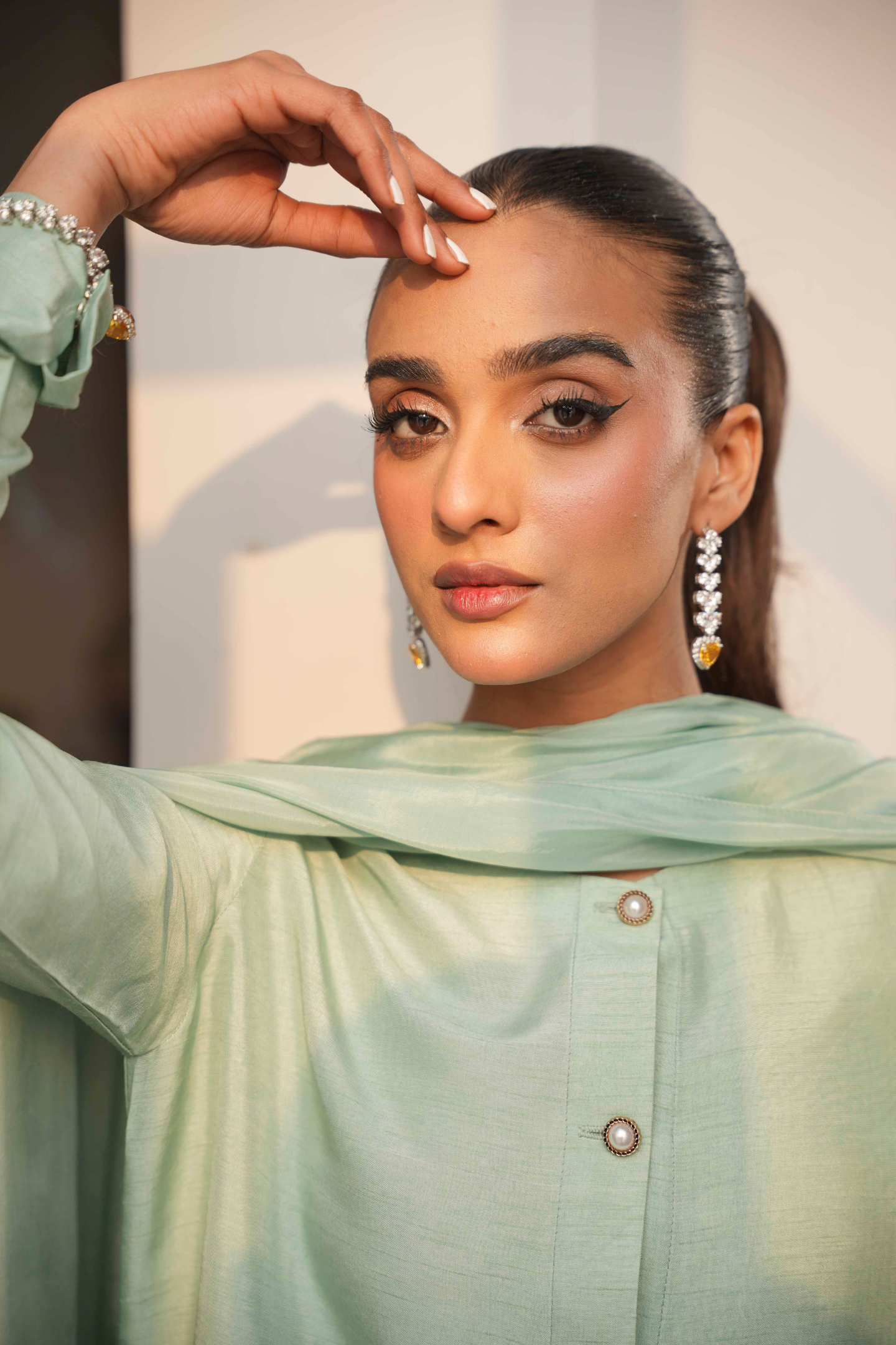 Whisper‑soft hues meet ethereal design in this elegant piece. Crafted with delicate attention to detail and a serene silhouette, this piece invites effortless grace—perfect for cherished celebrations and luminous moments.