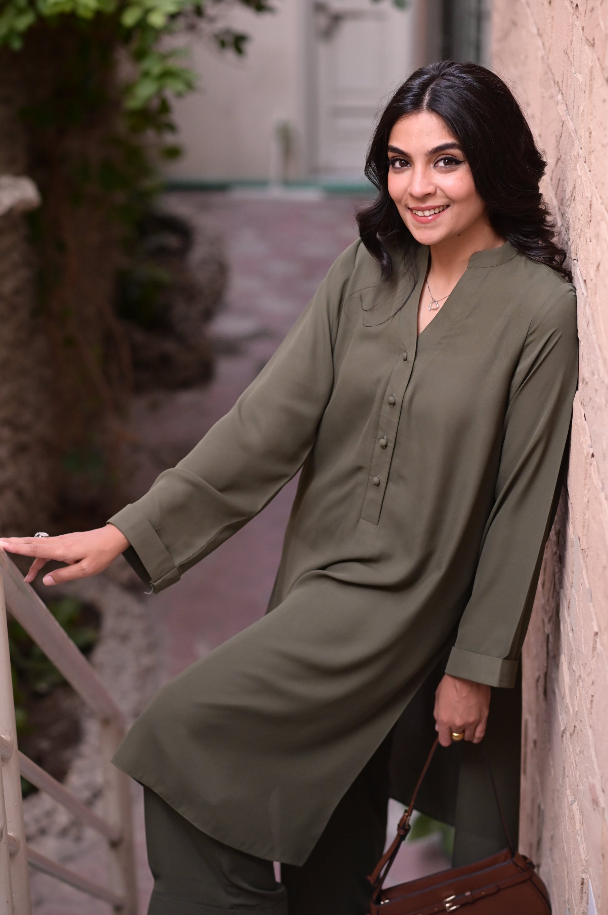 Elevate your wardrobe with our Olive Green Coord! This stunning shade of olive green is perfect for any occasion. The mid-length shirt and loose fit trousers are designed for comfort and style. Add a touch of sophistication to your look with this must-have piece.