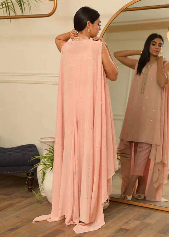 Additional Description: A delicately hand embroidered shirt drapped with lots of flowy fabric to give you the perfect fusion look.