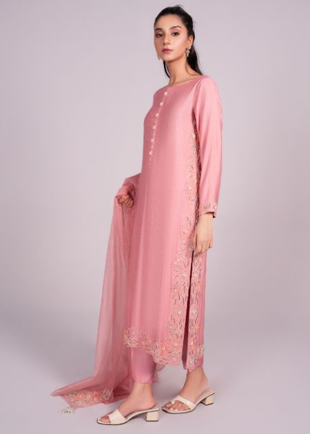Additional Description: Intricately embroidered with kut dana is just enough to give you a modern look with a hint of desi paired with embroidered dupatta and trouser